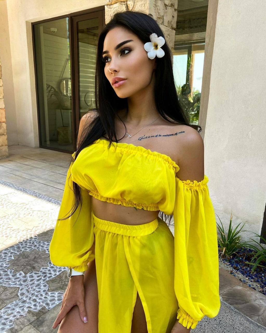 Bu pareo takımı, hafif ve akışkan şifon kumaşı sayesinde vücut hatlarını zarif bir şekilde sarar. Çift yırtmaç detayı, hareket özgürlüğü sağlarken, aynı zamanda modern bir görünüm sunar. Ürünün tam kalıp yapısı, farklı beden seçenekleri (S, M, L) ile her vücut tipine uyum sağlar. Sarı rengi, yazın enerjisini yansıtarak, güneşli günlerde dikkat çekici bir stil oluşturur.