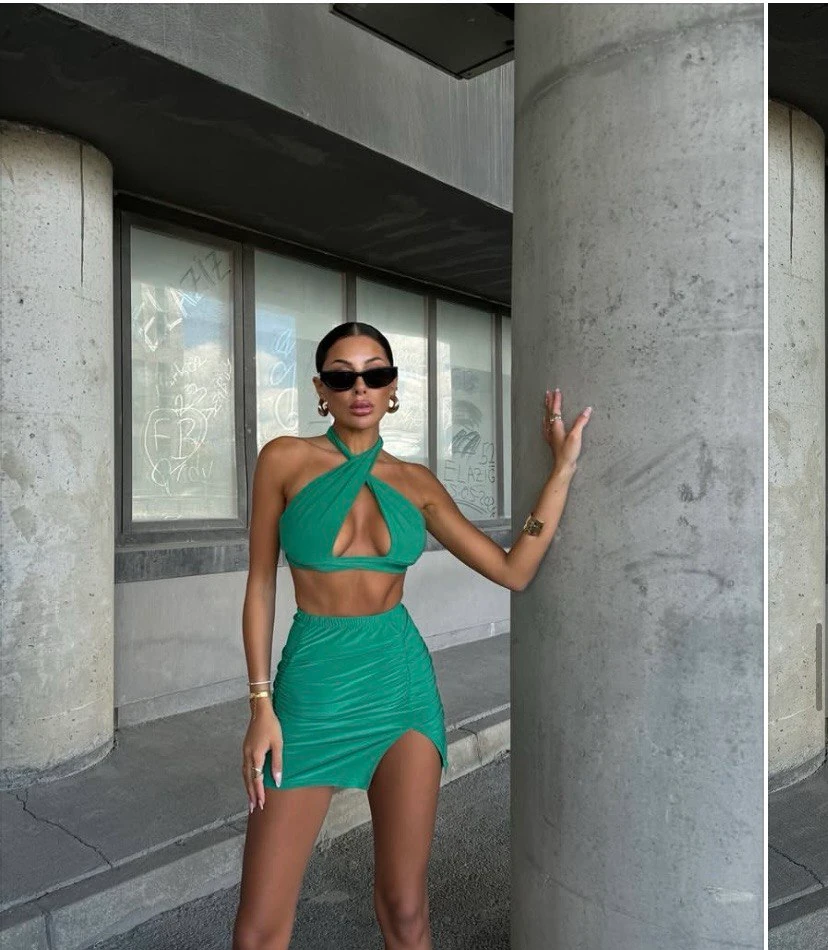 Maxi Etek&Bluz aksesuarlı ikili takım